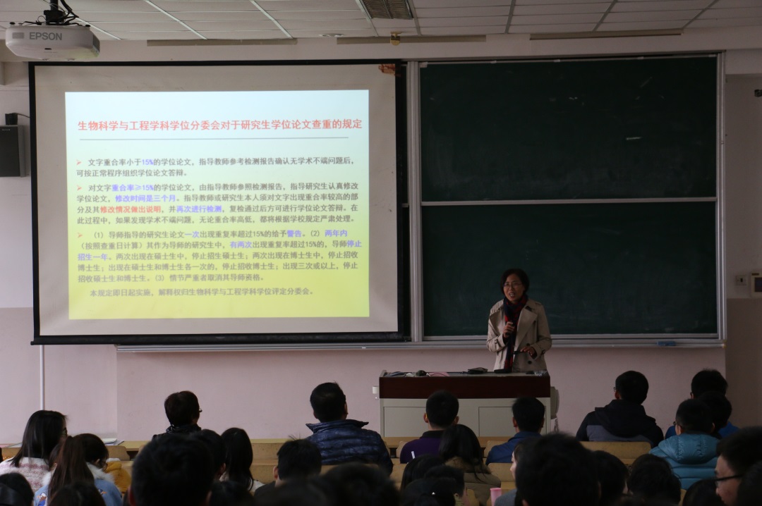 举办了研究生学术规范宣讲会。党委书记陆兵、分管研究生工作的副院长卢艳花及研究生管理相关老师和2014级硕士研究生和即将毕业的博士研究生出席了宣讲会。