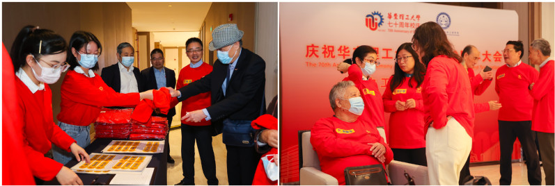 上午八时,各位校友陆续入会,签到处热闹非凡。穿着纪念衫的校友们在会场展板前合影留念,大家亲切交谈,共叙华理岁月。国产自拍