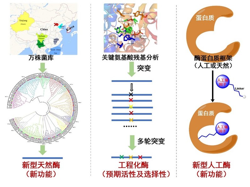 1.天然酶的挖掘与改造、新型人工酶的设计与创制(新功能酶原件的挖掘与开发)。