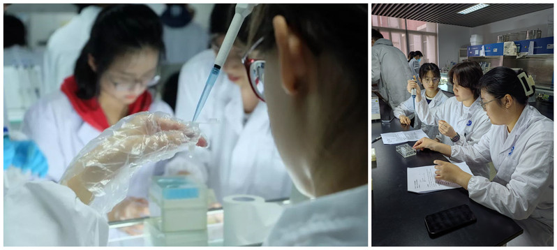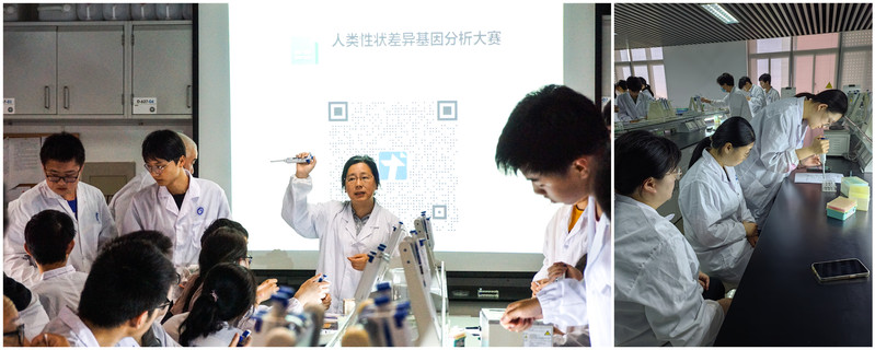 的同学第一次操作基因分析实验的仪器,大家都兴趣盎然,认真听讲并做笔记。