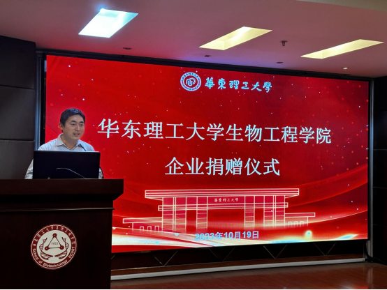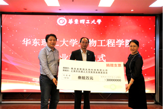 领导以及师生代表的共同见证下,李建伟、吴辉代表受赠方接受了金斯瑞生物科技有限公司的捐赠,李建伟为金斯瑞生物科技有限公司代表梁艳颁发了捐赠证书。