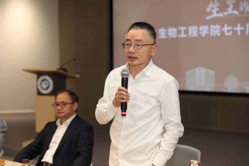 会上,叶邦策、陆兵及热心校友代表裘伟民、曹秋禹共同启动七十周年院庆主体标识发布仪式。标识整体采用“华理蓝”“院庆红”交织缠绕, 融合试管、DNA、分子式三种代表生工的元素,通过变形组合设计成70的样式,彰显生物工程学科特色。