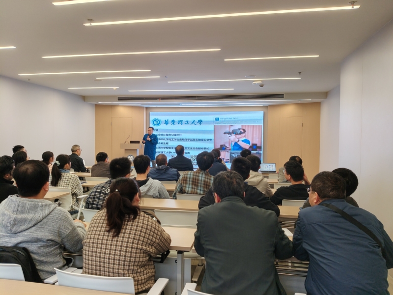 实验室安全管理实际,进行了系统深入的讲解。讲座中,他通过剖析多起真实发生的实验室安全事故案例,针对常见的安全隐患如危化品存储不规范、气瓶管理松懈、个人防护缺失等进行了逐一分析。他强调,教师要在实验室开展常态化风险辨识和隐患排查治理,推动实验室安全管理从“被动响应”到“主动预防”转变,将实验室安全教育融入学生从入学到毕业的全过程。