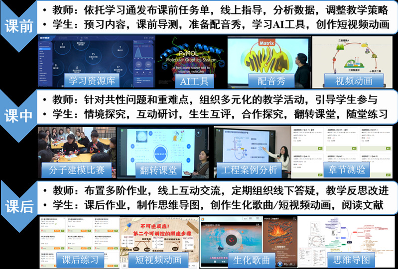 针对生物化学理论知识繁多、概念抽象、代谢通路复杂等问题,在保证教学内容的前沿性与学术性的基础上,创新引入数字人对话、AI工具、分子建模竞赛、配音秀、视频歌曲创作、趣味记忆、前沿文献导读、工程案例分析、随堂练习等多元化教学活动,激发学生的学习兴趣,将抽象的理论知识转化为可互动、可操作的具身体验,提高线下课堂的授课效率。同时,我紧密结合生活实例与临床案例,推动理论联系实际,并适时融入思政元素,以知识传授为载体,引领学生树立正确的价值观念。《生物化学》课程被国产自拍