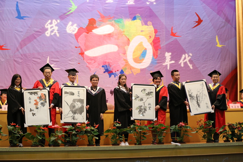 赠送了题有“春华、夏鸣、秋实、冬藏”的四幅国画留作纪念,并向教师及家长代表献上了鲜花,表达了毕业生对母校、老师和家长的感恩之情。