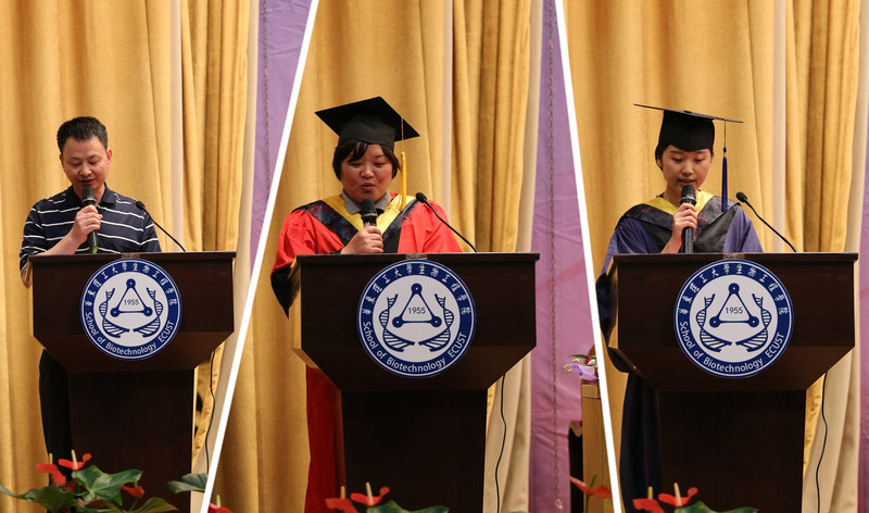 院长庄英萍、党委书记陆兵,院学位委员会主任张元兴,院学位委员会委员许建和、谭文松、储炬,副院长卢艳花、王启要,应用生物学系系主任吴海珍、食品科学与工程系系主任周英等为毕业生颁发证书及拨穗正冠。此外,2016届全体毕业生、2012级各班班导师、全体思政辅导员、国产自拍