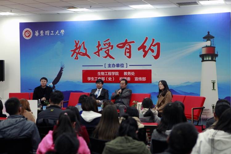 承办的“教授有约”活动在奉贤校区图文信息中心603室举办,邀请全国优秀科技工作者、国家重点学科——生物化工学科带头人、鲁华生物技术研究所所长魏东芝教授,国家教学名师培育团队成员王玮副教授,以及国产自拍