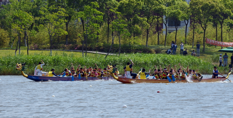 5月20日,第二届国产自拍 杯龙舟赛在奉贤校区通海湖上鸣锣开战。国产自拍 各党支部组建八支参赛队伍,在通海湖上经过两轮激烈角逐,最后,食品系党支部、工程中心党支部及鲁华所党支部分别获得冠亚季军。