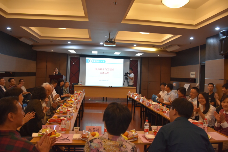 党总支书记的于接芸老师对当时创立专业的情况做了简要的介绍,32年前,俞俊棠等系领导就注意到了食品工程学科和产业发展的潜力,在师资少、资金紧缺、实验条件差的艰苦条件下,老师们仍坚持不懈地寻求方法,逐渐形成了专业的雏形并打下了务实中创新,磨难中进步的工作精神主旋律。首任食品工程教研组长徐玉佩和蔡云升老师分别对当时的师资力量和专业建立大事记做了详细介绍。正是前辈们孜孜不倦的教学、科研和以及对学生们的谆谆教导,不断借鉴、不断提升的优秀品质才把专业的根基夯实,为今后的发展打下坚实的基础。