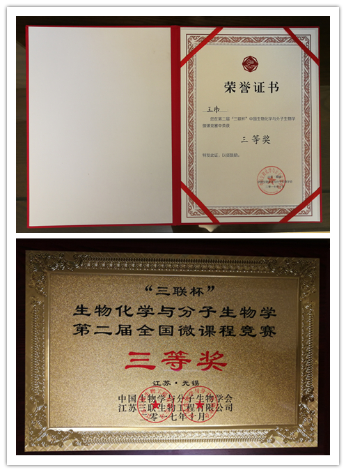 青年教师王玮获得第二届“三联杯”中国生物化学与分子生物学微课公开赛三等奖。本届微课公开赛由江苏三联生物工程有限公司、中国生物化学与分子生物学会、聊城大学共同主办,聊城大学承办。这次活动将为所有生物化学与分子生物学教师提供学习和探讨教学思路、教学设计和教学方法的平台。