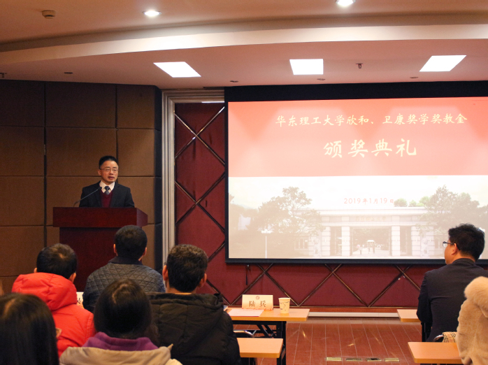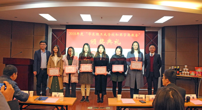 欣和奖学奖教金、卫康奖学奖教金颁奖典礼在实验十八楼315隆重举行。山东欣和食品工业有限公司销售总监李知明先生、华东区域经理高古风先生、销售经理曹通先生、李蓉女士和李萱女士出席颁奖典礼,国产自拍