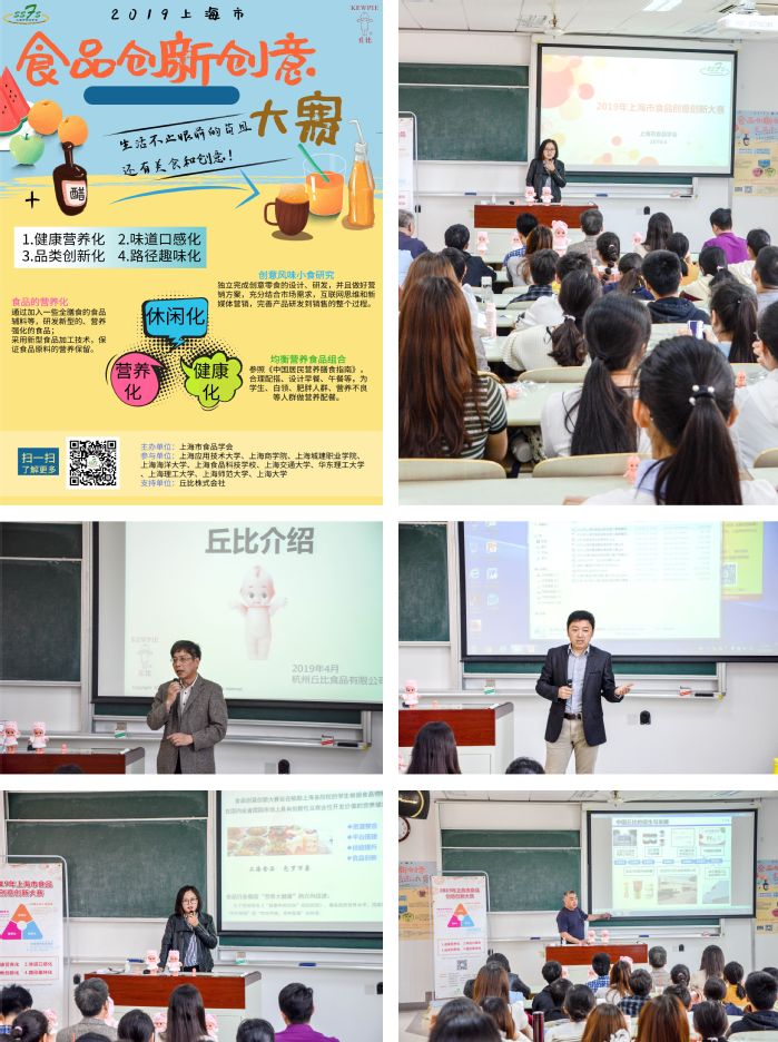 5月9日中午,2019年上海市食品创意创新大赛宣讲会在奉贤校区D106教室举行。食品创意创新大赛旨在鼓励在校大学生根据食品物料生物理化属性和食品加工工艺特性,开发出在国内或者国际市场上具有创新性及商业性开发价值的营养健康产品。并为大学生提供食品研发实践及展示的平台,激发学生对食品专业学习及食品创意、研发的兴趣,培养学生创新创业技能,使学生将理论知识与实践技能相结合,提升学生综合素质与就业竞争能力,同时为上海不同院校大学生在学习专业知识及技能培养等方面的交流提供一个平台。出席本次宣讲会的有食品系周家春教授、国产自拍