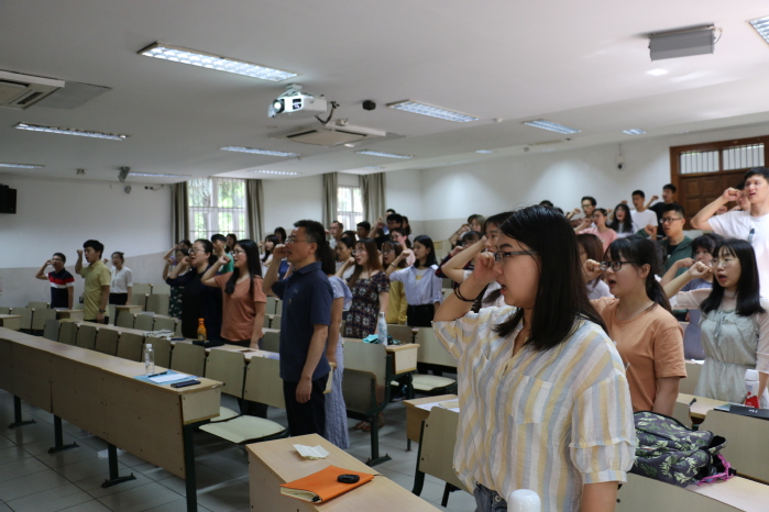 党委书记陆兵、研究生辅导员孙希彤以及全体毕业生党员参加。活动共分为五个部分,分别是党课主题教育、重温入党誓词、党员代表发言、合影留念、组织关系转移办理。