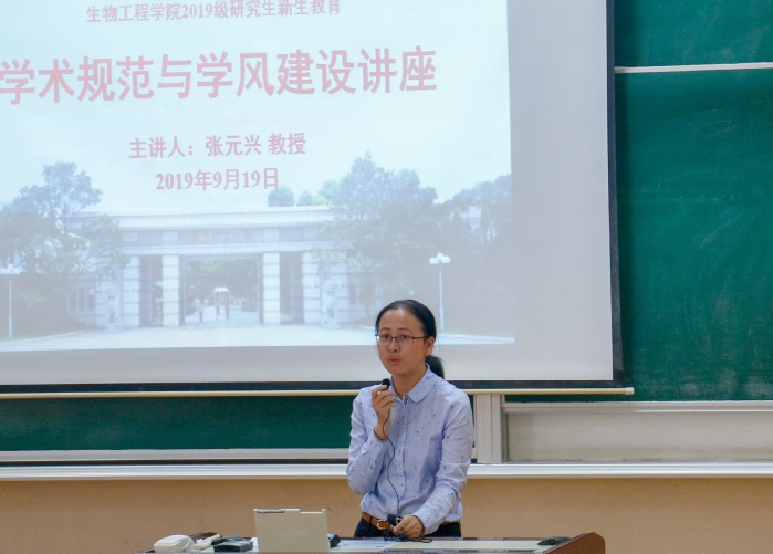 张教授用生活中浅显的实例为同学们解读了“勤奋求实,励志明德”的校训内涵,并就新生对校训的践行提出了要求和期许。张老师的谆谆教诲强化了广大研究生新生学术行为规范意识,如何成为一名优秀的研究生,如何进行科学规范的学术研究引起了同学们深刻的思考。通过倾听本次讲座,同学们对于学术规范与学风建设问题有了更深的认识与把握。