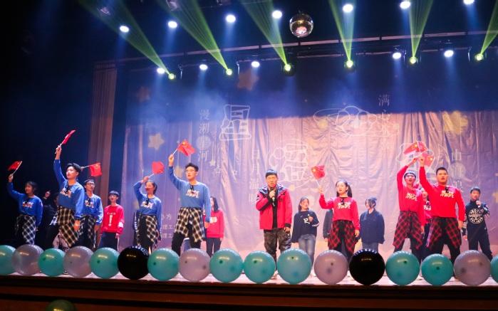 晚会以“仰望星空,脚踏实地”为主题,从弘扬传统文化的融合了新中国成立七十周年、奋斗最美、快乐校园生活等元素,一首改编rap《红色》,伴着《改革春风吹满地》的舞蹈,更是将晚会气氛推向高潮,迎来观众们的阵阵掌声。2019级新同学通过不同舞台形式展示了入学以来的精彩生活,表达了对创造未来校园美好生活的向往和决心。