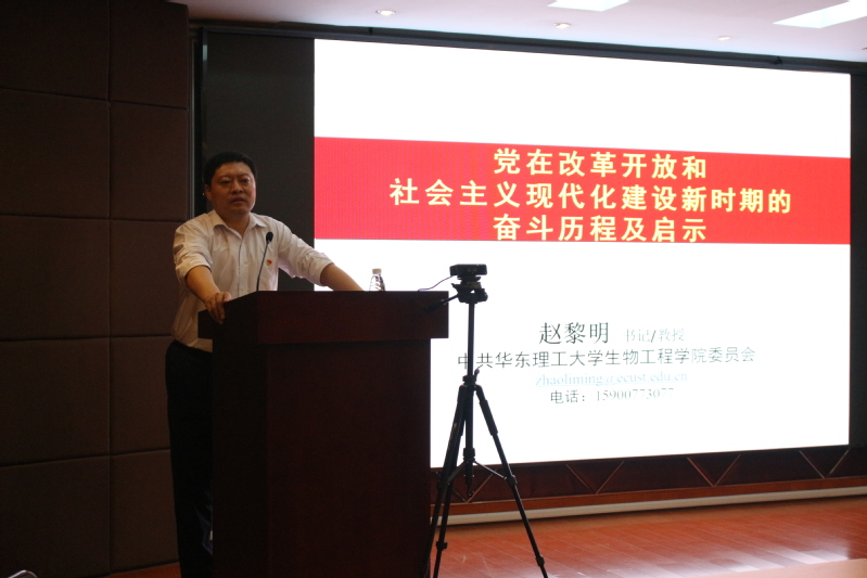 首先,赵书记以“两个一百年”奋斗目标作为引出,以时间轴为主线讲述了新中国成立以来,中国共产党人带领全国人民的艰苦奋斗及探索我国发展道路的艰苦卓绝的历程。改革开放是决定中国命运的关键一招,十一届三中全会以来中国共产党制定的一系列新的方针政策,概括起来,就是改革开放。改革开放是推动社会主义发展的动力,是中国的第二次革命。赵书记将改革开放42年分为三大阶段,结合重大历史事件和标志性成果进行了讲解,并就自身经历和所学与党员同志分享感悟。赵书记还以上海的改革开放历程作为示范典型,从改革开放初期上海的城市面貌和面临的经济社会问题,谈到大胆改革、勇于创新的改革开放助力上海成为“海纳百川,大气谦和”的文化精神的国际化超大城市,每一步的发展都离不开锐意进取、大胆改革、创新发展的精神和人才与科技的支撑。上海的发展既享有机遇也面临挑战,我们每位身在上海的一分子都有责任投身于上海新发展的洪流中。同时,作为青年科技人才,在今后的科学研究中要以四个面向作为指南针,脚踏实地,努力实现科技创新,自主掌握关键核心技术。我国改革开放的历程,对我们来讲,有一个核心的借鉴意义,就是要以“初心使命”为立足点,不断解放思想、开动脑筋、实事求是、创新发展。