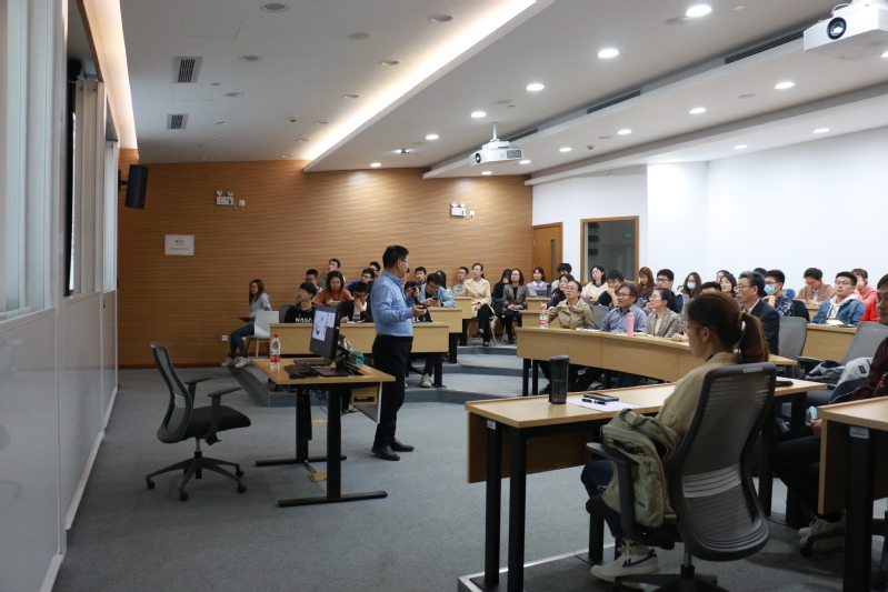 师生与袁其名教授就合成生物学体系设计等问题进行了深入的交流讨论。袁教授的报告让在场师生对合成生物学有了更深刻的认识,在解决科研问题上有了新的思路和方法。大家特别感谢袁教授带来的精彩讲座。