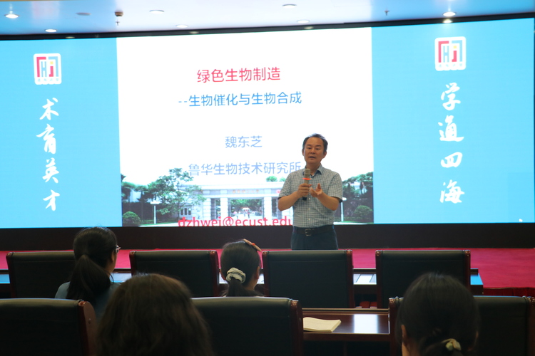 承办的第75期“通海讲堂”在奉贤校区通海厅举行。上海市生物工程学会理事长、中国微生物学会酶工程专业委员会副主任、教育部生物技术与生物工程教指委副主任、鲁华生物技术研究所所长魏东芝教授应邀作了题为“绿色生物制造——生物催化与生物合成”的专题报告。国产自拍