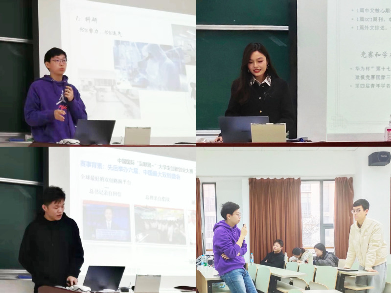 蔡书善同学着重向大家讲述了自己参与社会实践和学生工作的收获;周静茹同学分享了参与数模竞赛的历程和所做的准备;季亮同学分享了参与双创竞赛对于自己生活的影响。科研、竞赛与社会实践并进,嘉宾们的分享让与会同学感受到研究生生活的丰富多彩。
