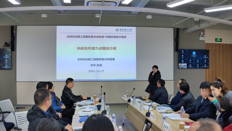 生物反应器工程国家重点实验室(简称“国重室”)受中国生物技术股份有限公司(简称“中国生物”)之邀,在上海捷诺生物科技有限公司(简称“上海捷诺”)进行合作交流讨论会。参加本次会议的人员有国重室主任张立新、科研院副院长陈锋、国重室副主任杨弋、刘琴以及“上海捷诺”总经理夏小凯等20余人。同时国重室多位教授和中国生物科研部研发人员线上参加本次会议。