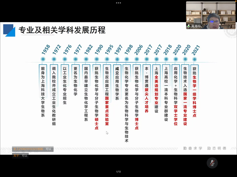 2021级生工大类的同学们即将面临专业的选择与分流。为了帮助2021级本科生深入了解各个专业,确定以后的专业方向,本期生工讲坛邀请应用生物学系系主任吴海珍教授作题为“专业底蕴介绍与分流解读”的讲座。