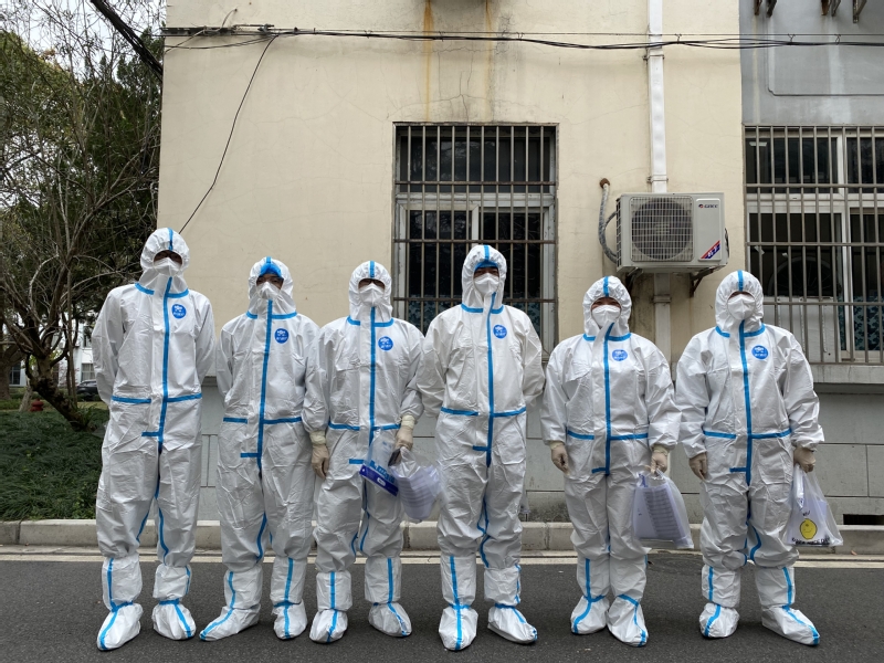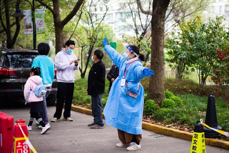 教师们积极投身战“疫”一线。校内教师住在办公室和会议室,坚守在一线,悉心陪伴学生;校外教师投入社区抗疫,奋战在第一线,共同守“沪”,坚决打赢疫情防控阻击战。