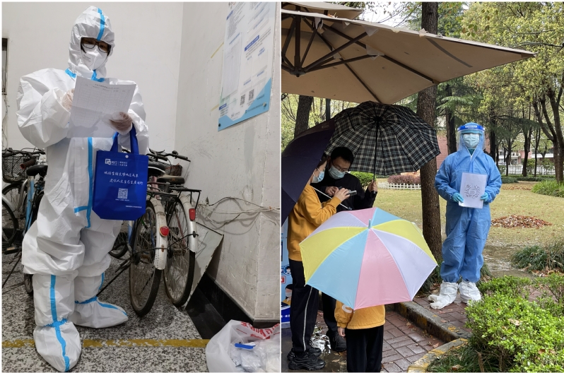 第一时间成立校内工作突击队,院长庄英萍任21舍和22舍楼长,副书记左鹏任助理,突击队成员包括:副院长刘琴、王启要,青年教师、研究生兼职辅导员安法梁,博士后邵帅、陈飞飞、曹雪玮、左方婷,奉贤校区梁心怡。校内工作突击成员每天工作十几个小时,晚上只能在办公室休息一下,有时候半夜一个电话,就又要忙碌起来。他们迎难而上、不辞劳苦、心系学生,对接两千余名学生,每天的工作繁忙而有序。他们有时变身“大白”,定期组织学生核酸检测;有时变成送餐员,将一日三餐准时热乎乎地送到学生手中;有时成为快递员,协调保障学生的物资供应;有时变成送药小哥,竭尽所能帮助学生寻医问药;有时变身心理老师,耐心疏导学生的不良情绪。他们是学生心中的贴心老师,更是学生眼中的超人,他们就是最美的逆行者!