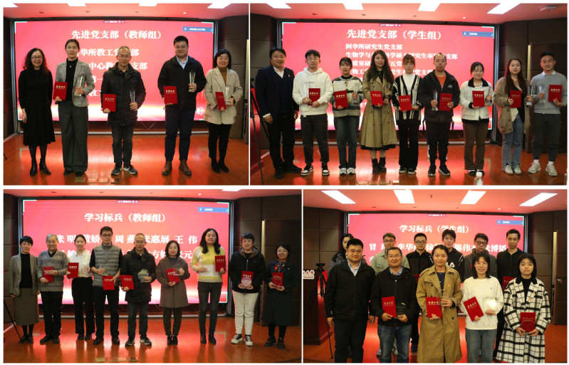 师生个人2022年度总积分排名,评选出10名教师学习标兵和10名学生学习标兵。杜仕菊和吴辉为先进党支部颁奖,刘琴和田锡炜为学习标兵颁奖。鲁华所教工党支部书记林金萍和阿华所研究生党支部书记吴宵依次分享了党支部 “学习强国”学习心得和经验。
