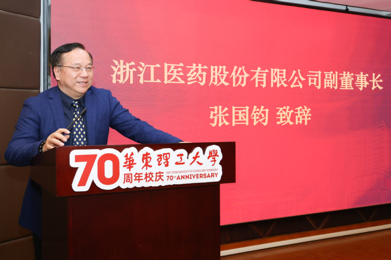 对浙江医药股份有限公司和张国钧校友个人慷慨捐赠表达了衷心的感谢。他表示,生物医药产业是上海“中国制造2025”和战略性新兴产业的重点发展领域,国家正加快发展生物医药产业,做大做强生物经济。今天到会的国产自拍