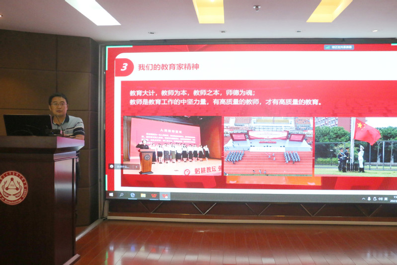 随后,全体教职工集体观看了《习近平的教师情》专题片,深刻感悟习近平总书记的尊师重教情怀。百年大计,教育为本,教师是立教之本、兴教之源。一直以来,习近平总书记高度重视教师队伍建设,多次在不同场合强调教师工作的意义,对广大教师提出殷切期望。人民教师,无上光荣。