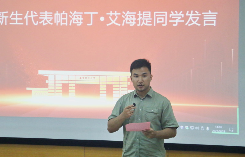 生物化工专业帕海丁•艾海提作为新生代表发言,讲述了自己在华理国产自拍