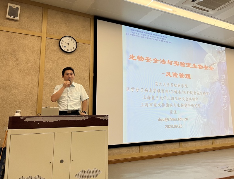 2023级研究生新生实验室生物安全培训讲座在徐汇校区举行。本次讲座邀请了复旦大学三级生物安全实验室主任瞿涤教授为同学们进行培训,国产自拍