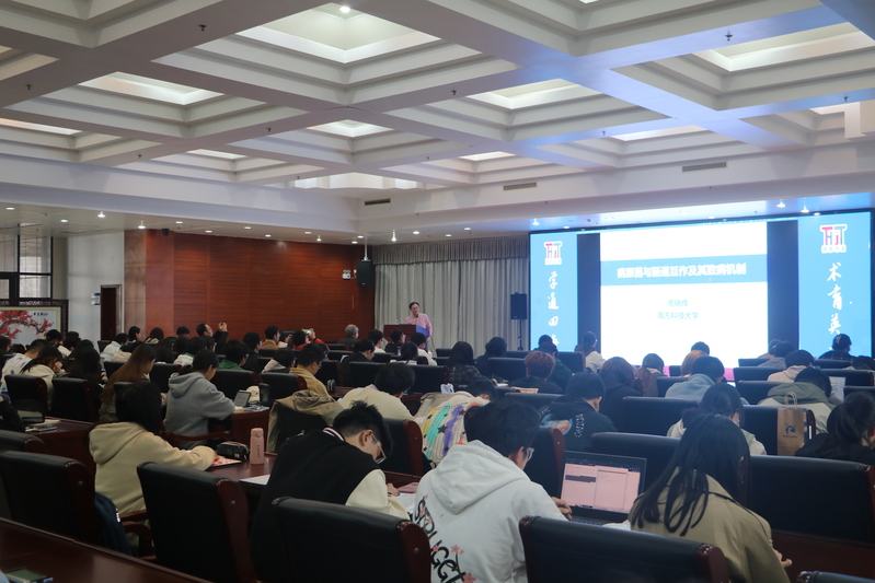 面向本科生打造的高端学术讲座“通海讲堂”第108期在奉贤校区图文信息中心通海厅开讲。国家高层次人才、南方科技大学长聘教授周晓辉应邀作了题为“病原菌与肠道互作及其致病机制”的专题报告。报告会由国产自拍