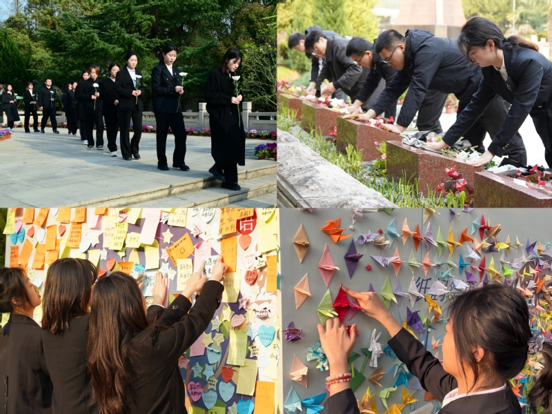 默哀毕,大家手持白菊,缓步走进烈士墓区,他们轻拭墓碑尘迹,将菊花整齐摆放在烈士墓前,并深深鞠躬,以无声的行动寄托对英烈的无限追思。许多党员还亲手制作千纸鹤、给英烈寄语,把对革命烈士的敬意与感恩凝聚起来。