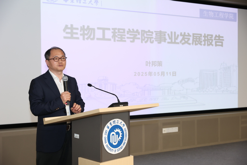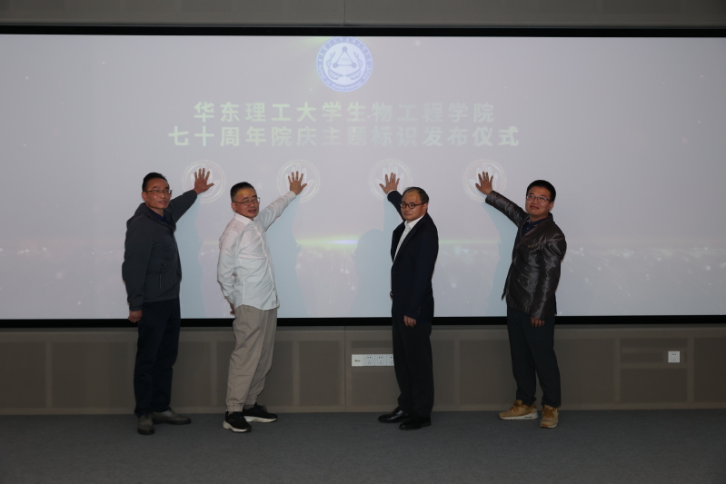 会上,叶邦策、陆兵及热心校友代表裘伟民、曹秋禹共同启动七十周年院庆主体标识发布仪式。标识整体采用“华理蓝”“院庆红”交织缠绕, 融合试管、DNA、分子式三种代表生工的元素,通过变形组合设计成70的样式,彰显生物工程学科特色。